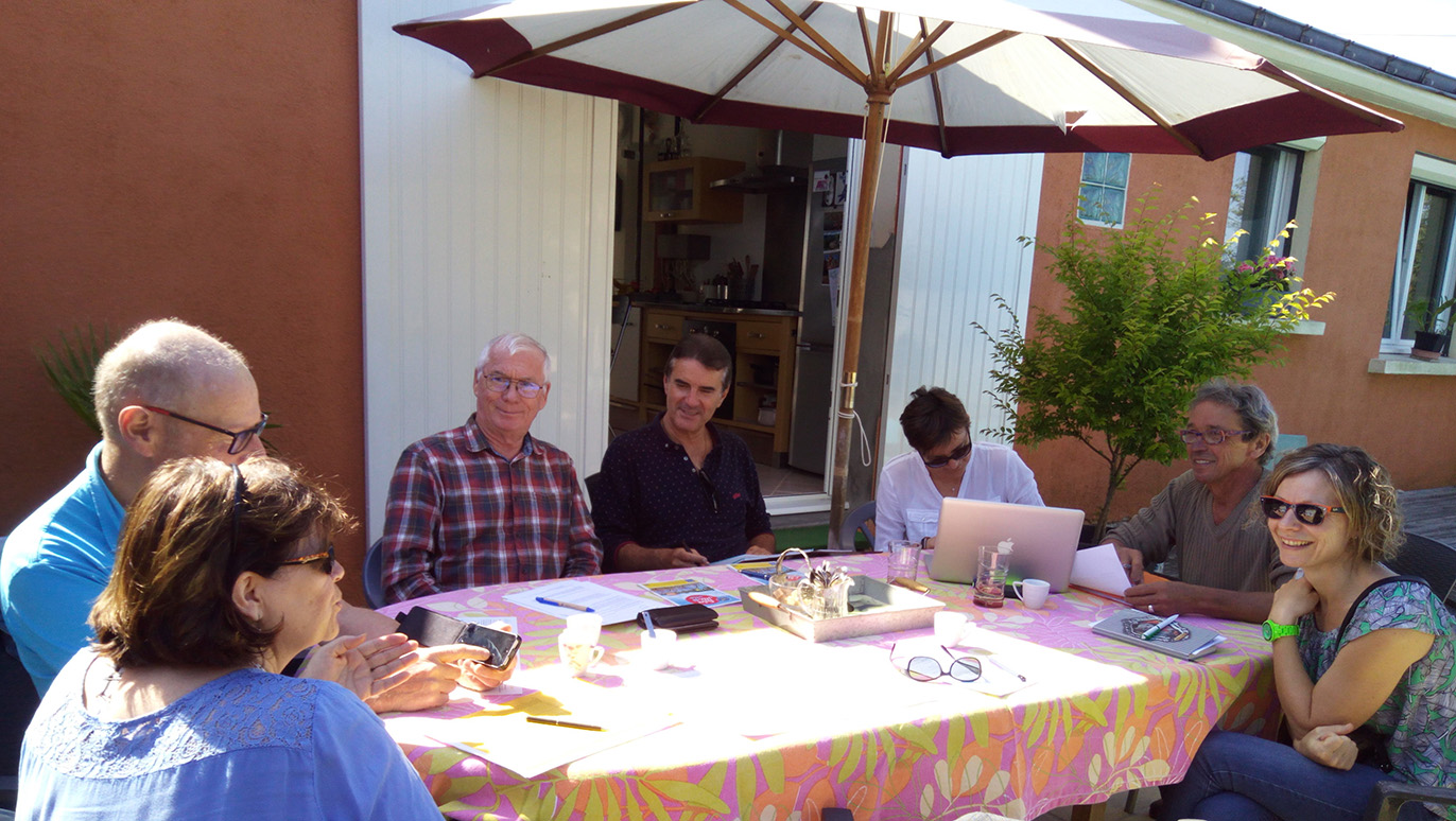 Aujourd’hui, réunion des membres du bureau de l’association de Vallées avec au programme : derniers préparatifs de la fête du vélo, préparation et suivi des animations et actions 2018. Yako et Mango, les 2 perroquets de Marie et Marco, nous accompagnent gaiement. Mango siffle et danse avec entrain. Yako étudie le parcours de la fête du vélo pour demain !