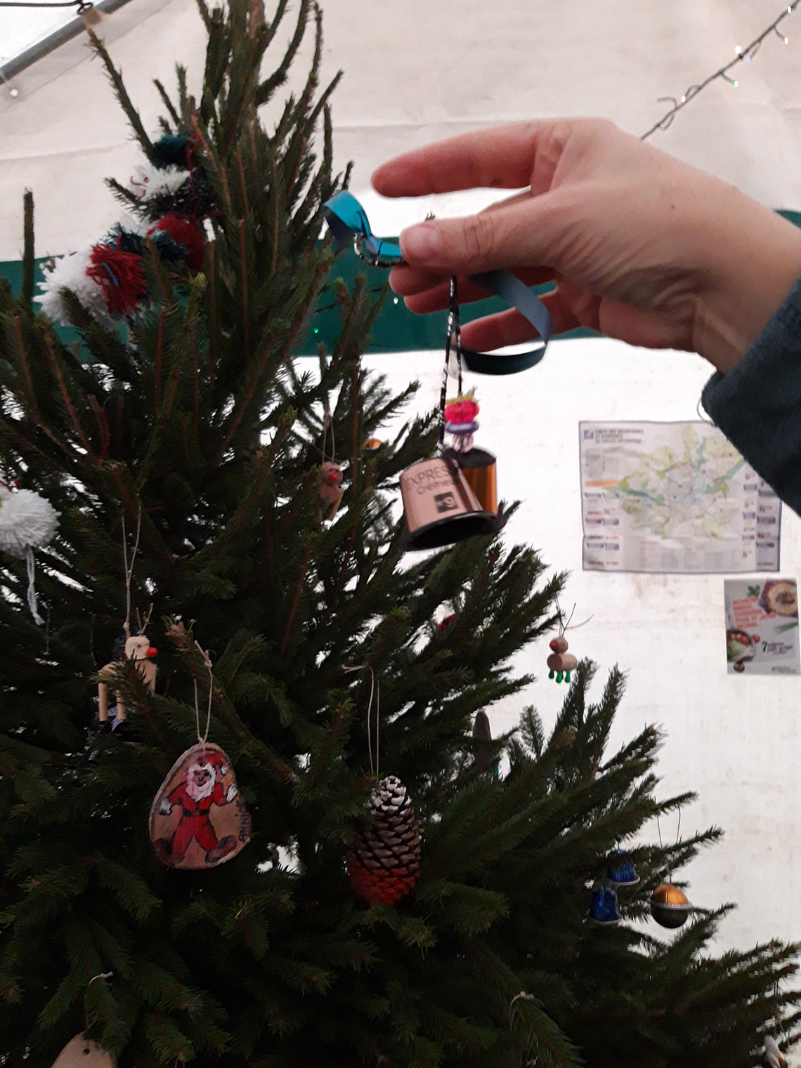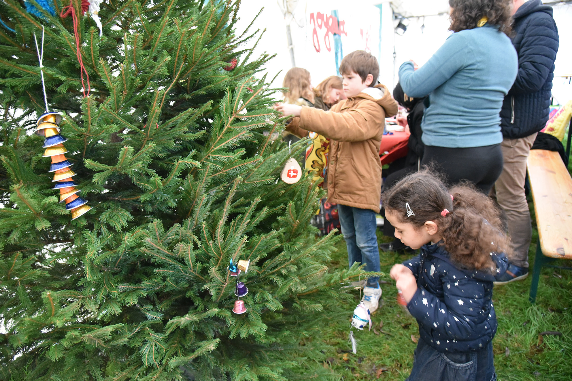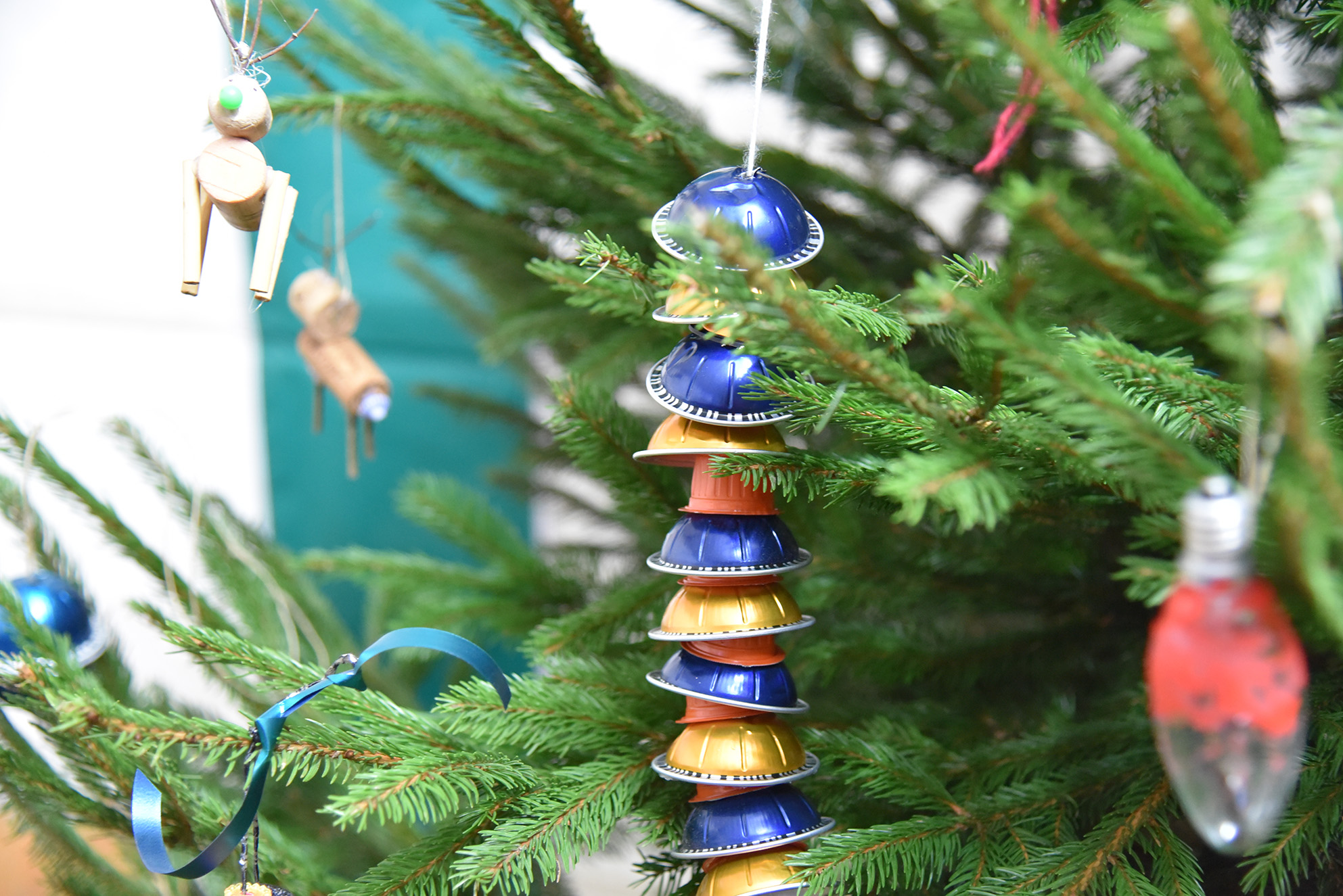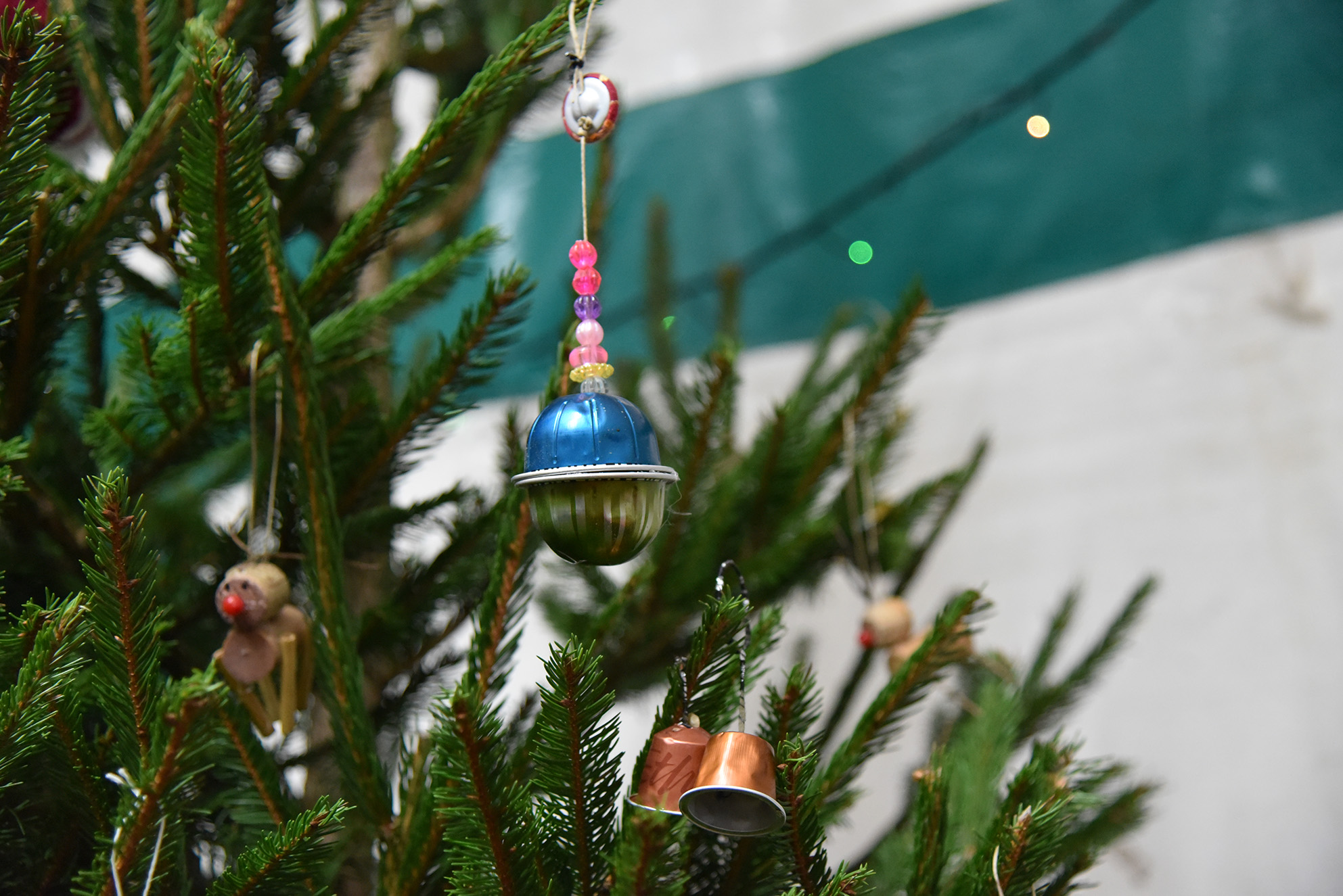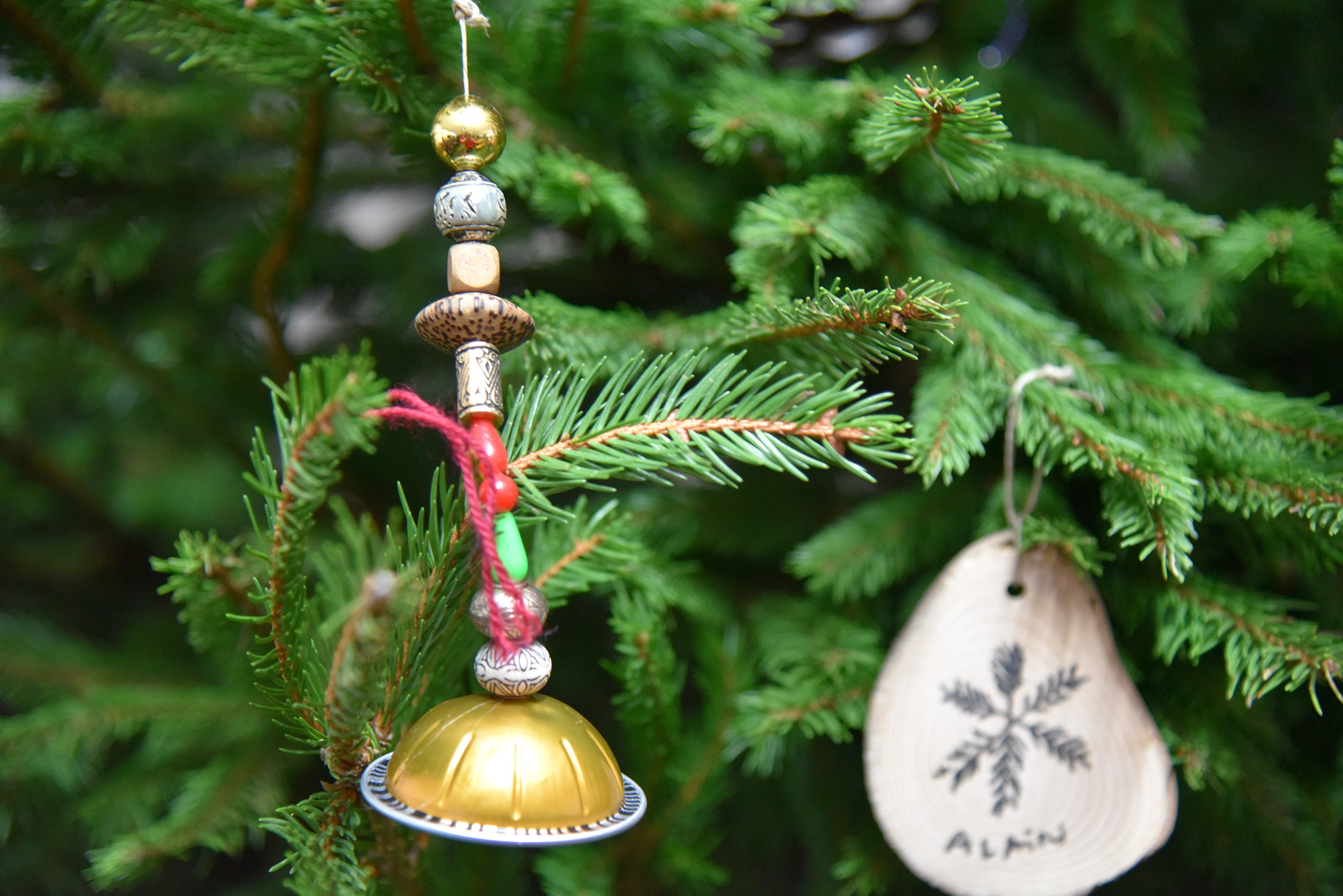 Aux Vallées, nous aimons notre planète ! Et comme une décoration de Noël est toujours plus belle et réussie si elle est partagée, aux Vallées à l’occasion de notre traditionnel goûter de Noël, c’est ensemble, que la décoration du grand sapin, offert par la mairie sur notre terrain associatif, a été réalisée, avec … toutes les créations d’enfants des Vallées, et des habitants du quartier ! Toutes les guirlandes et suspensions ont été créées avec des matériaux de récupération (bouchons, perles, rubans, capsules de Nespresso ou Tassimo, boutons, ficelles, laines, ampoules…) et objets de la nature (rondins de bois, pommes de pin).