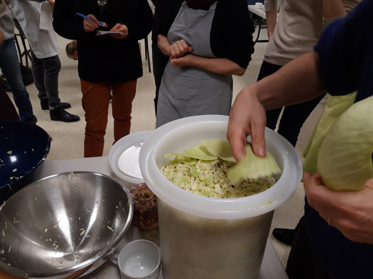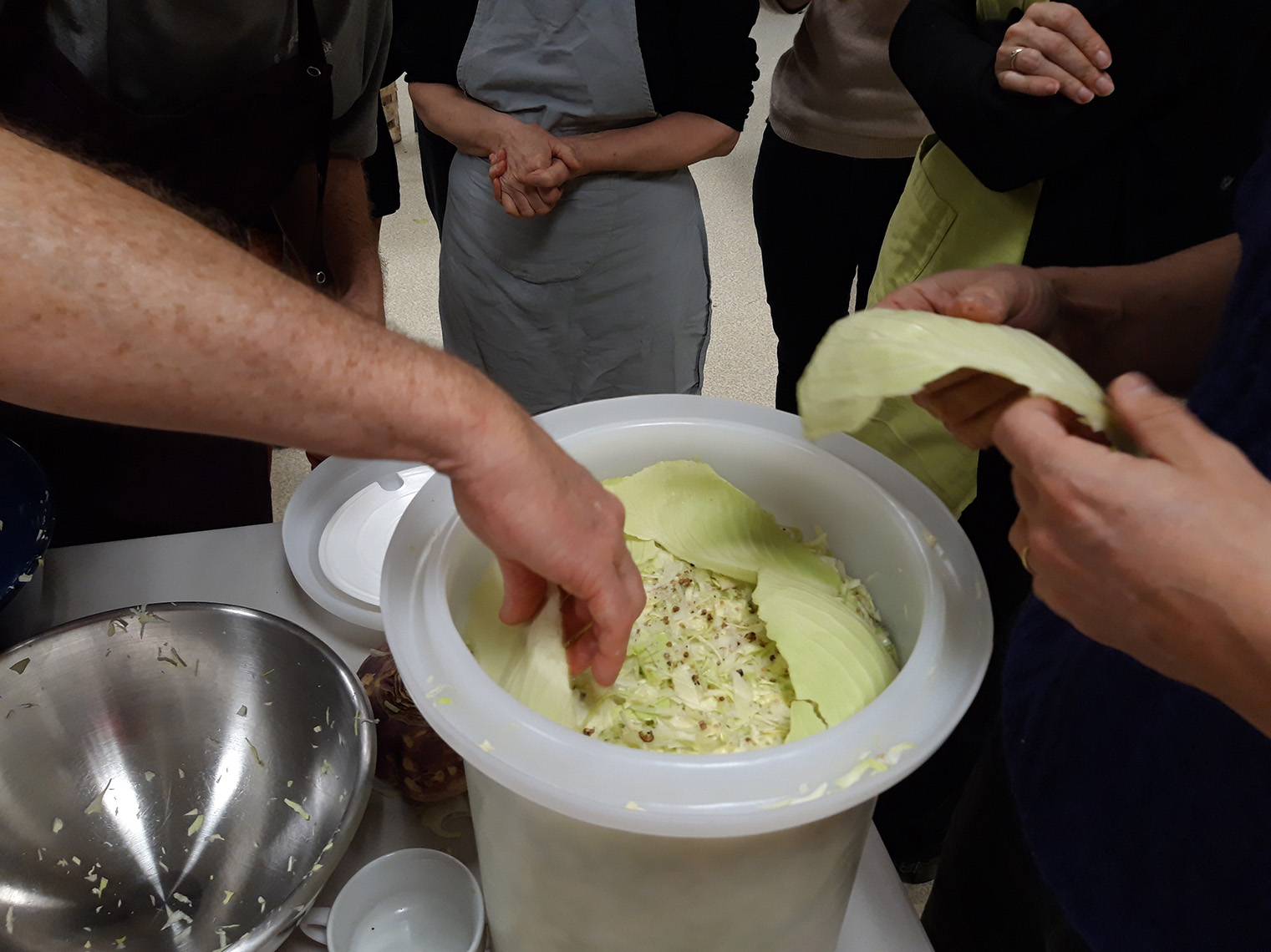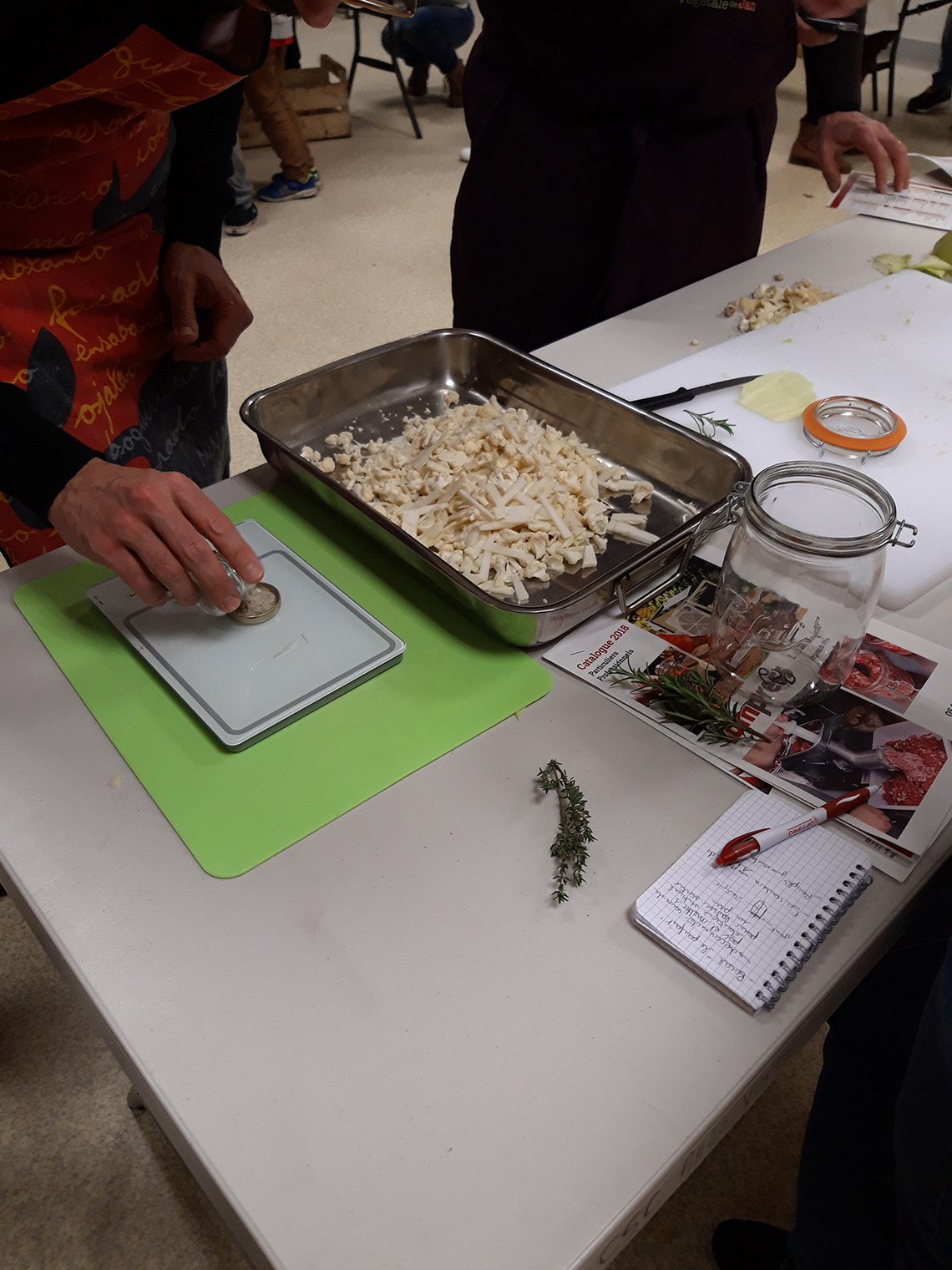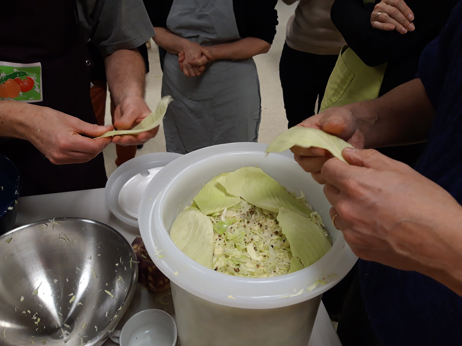 - prĂ©parer 1% du poids du lĂ©gume , en Ă©pices /sel (donc si 1kg de chou, 10 g de sel) Les aromates peuvent ĂȘtre un peu de poivre en grain, du laurier et un peu de thym. On peut aussi ajouter de la cardamone, des clous de girofles, des baies de geniĂšvre etc.