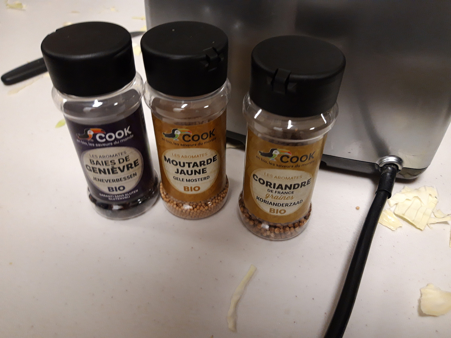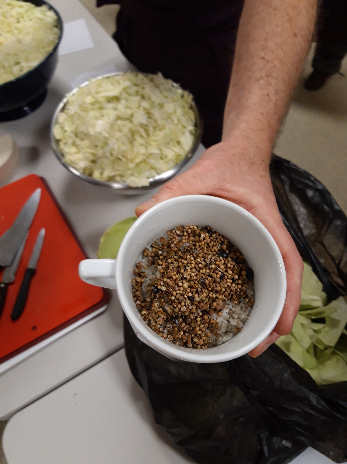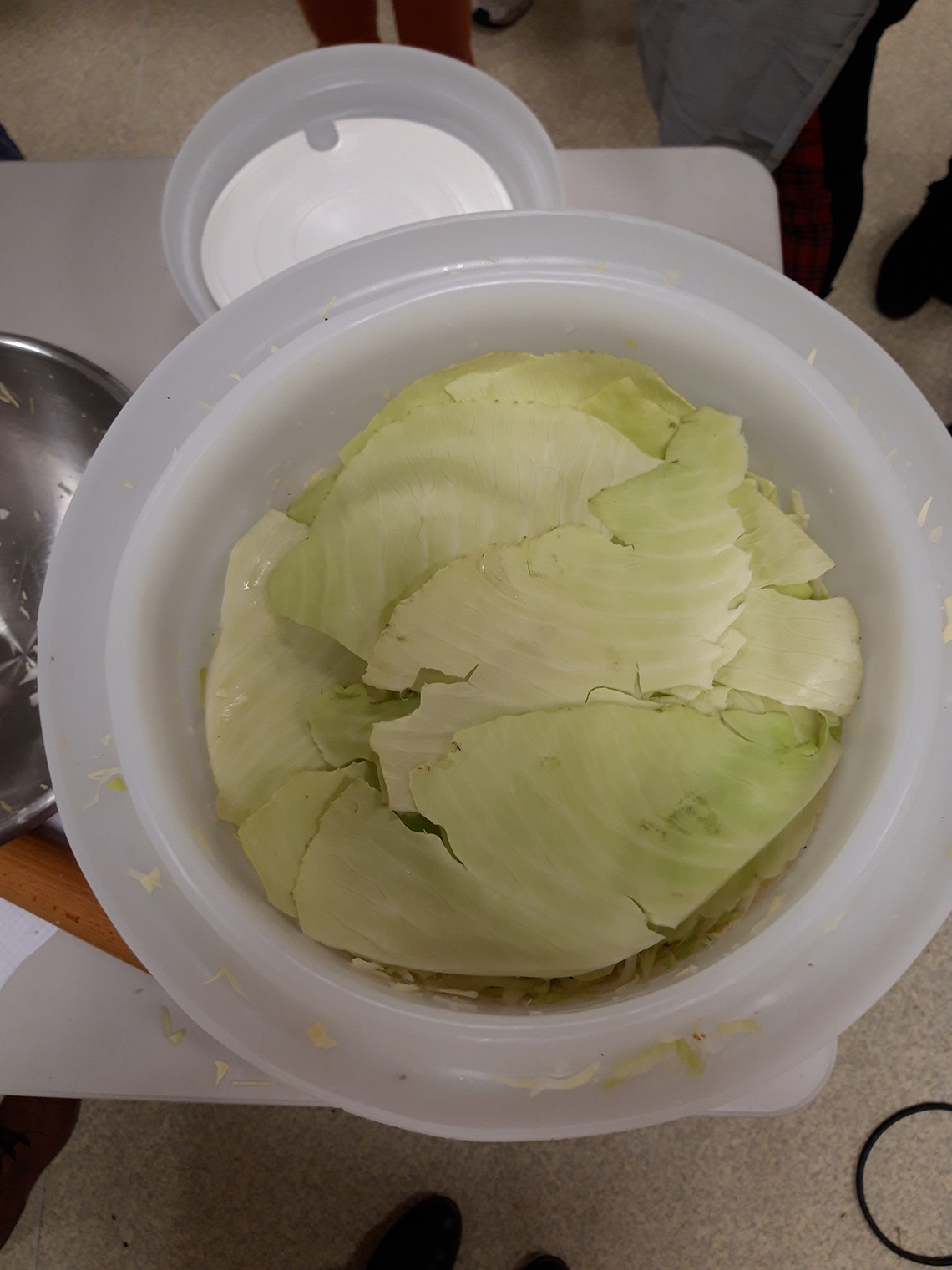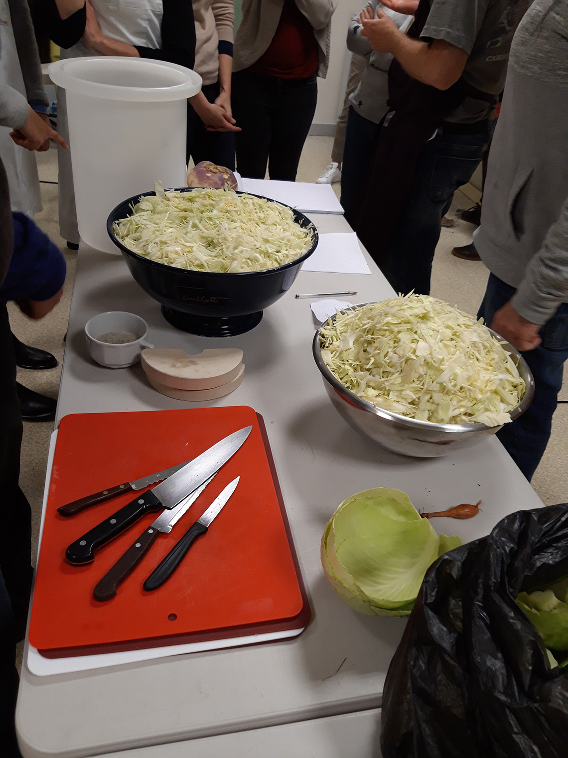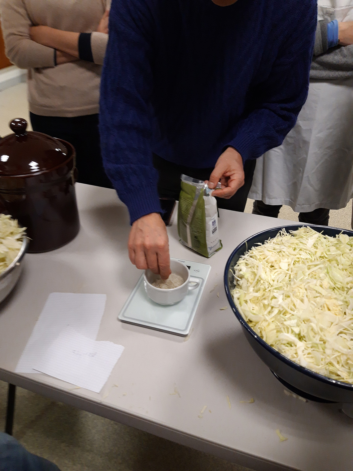 - prĂ©parer 1% du poids du lĂ©gume , en Ă©pices /sel (donc si 1kg de chou, 10 g de sel) Les aromates peuvent ĂȘtre un peu de poivre en grain, du laurier et un peu de thym. On peut aussi ajouter de la cardamone, des clous de girofles, des baies de geniĂšvre etc.