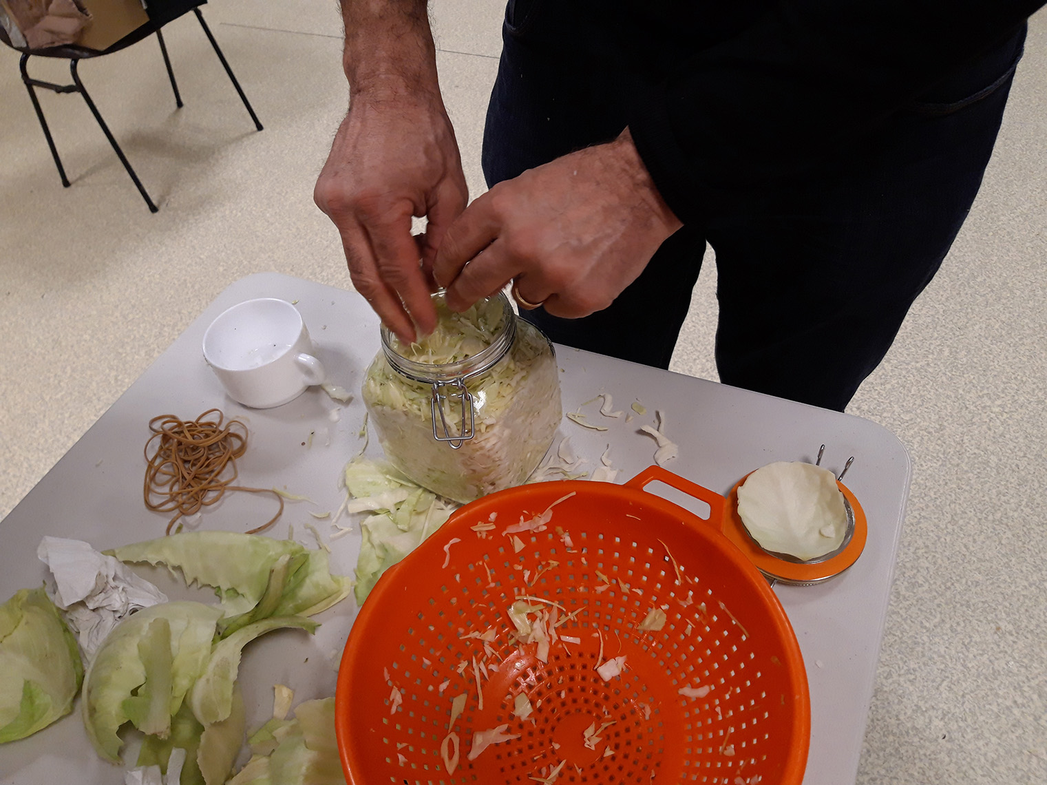 - Prendre des bocaux de type Parfait, des joints en caoutchouc neuf et un élastique pour appuyer sur le bocal dans le sens de la hauteur (donc un élastique assez grand ) ⊠ou une jarre de fermentation pour les grosses quantités pour les choucroutes !