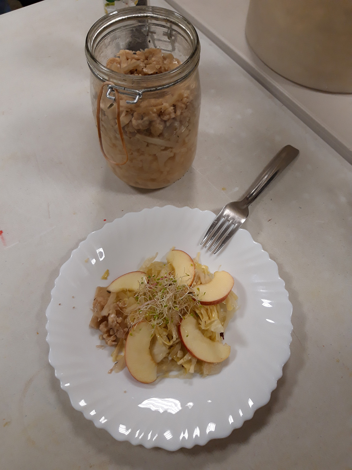 - A la fin du bocal, le chou doit rendre son eau et recouvrir les morceaux