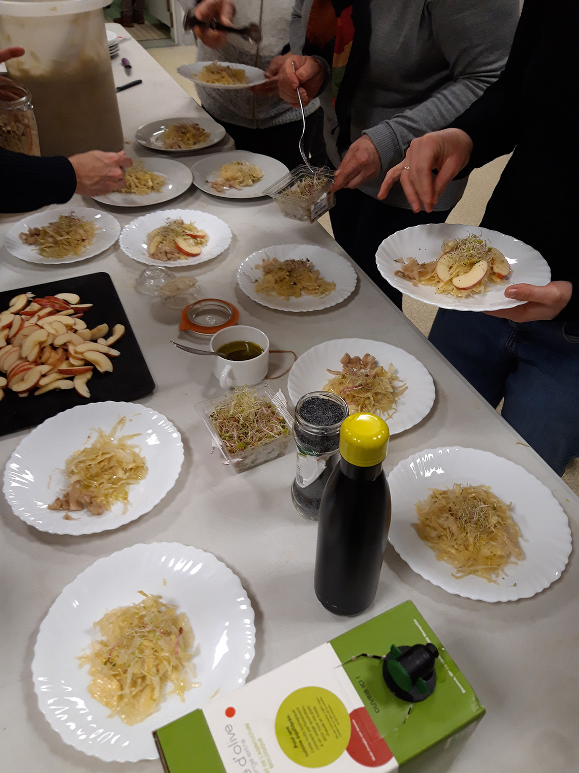 - Alterner les couches de légume rùpé et le mélange sel/épices (2ou 3 pincées par couches)