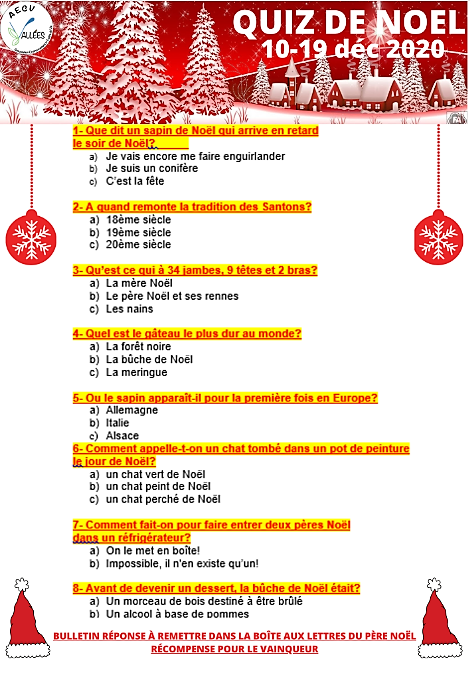 L’association des Vallées vous a préparé un petit quiz humoristique afin de tester vos connaissances sur le thème de … NOËL !! 🎅🎄