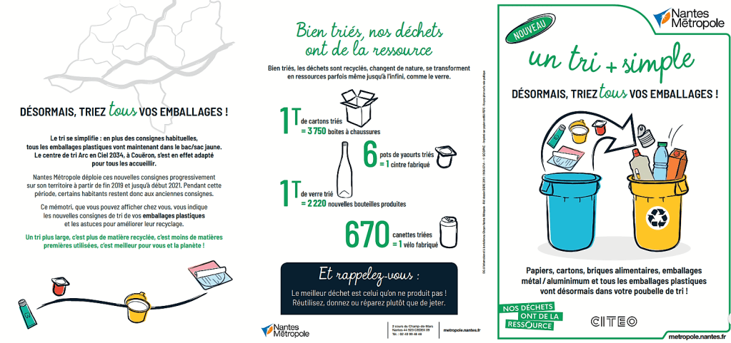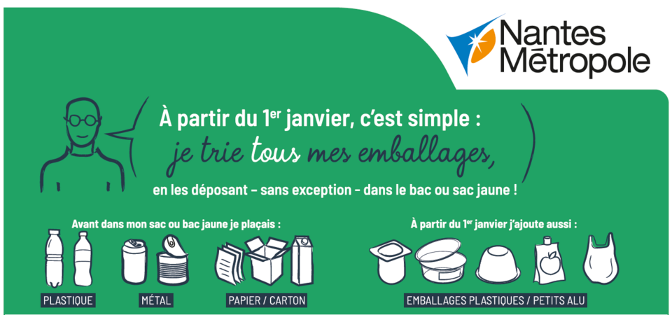 Même si vos emballages affichent des consignes différentes, n’en tenez pas compte et suivez la nouvelle consigne de tri de Nantes Métropole, à partir du 1er janvier 2021 !