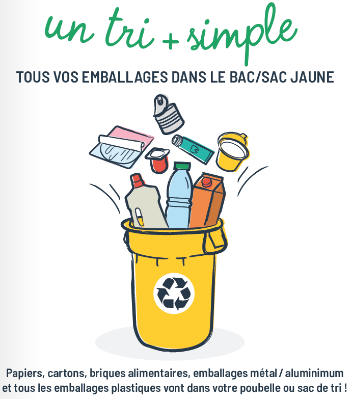 Fini de se poser la question de comment trier son pot de yaourt ou le film plastique entourant les bouteilles de lait ! Tous les emballages plastiques iront, à partir du 1er janvier 2021, dans votre sac de tri jaune avec le papier, cartons, briques alimentaires, emballages métal / aluminium