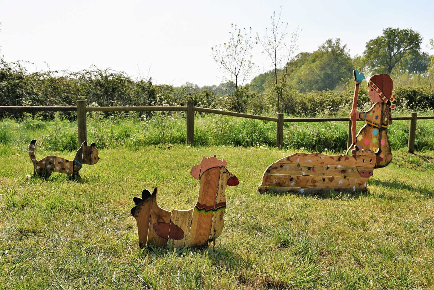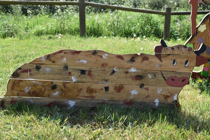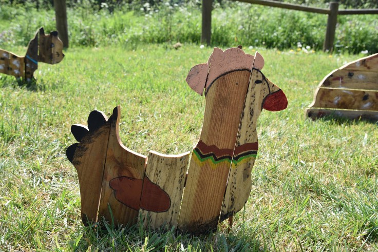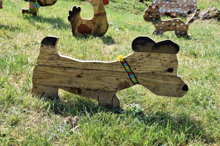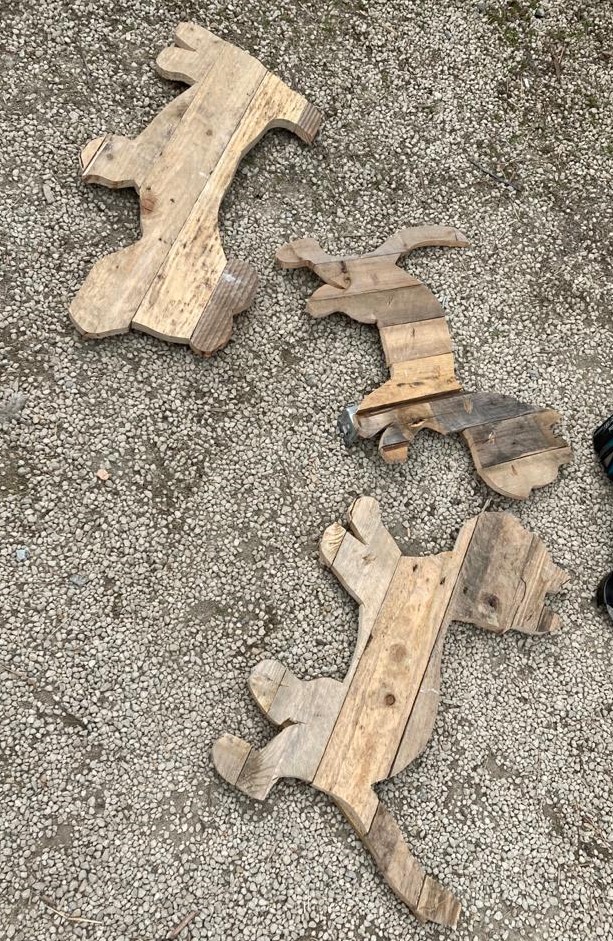 La semaine suivante, la phase découpage du bois et assemblage démarrait sous un soleil toujours aussi radieux, et donnait naissance à de magnifiques animaux de ferme en palettes.
