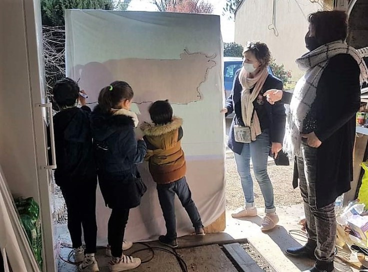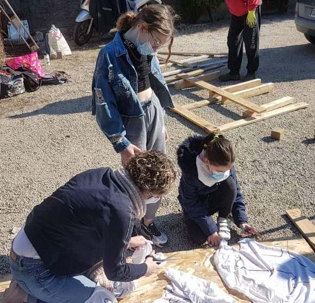 Début mars, le démantèlement des palettes a été rondement mené par les adultes, tandis que des enfants répondaient présents pour la phase dessin et découpage des gabarits.