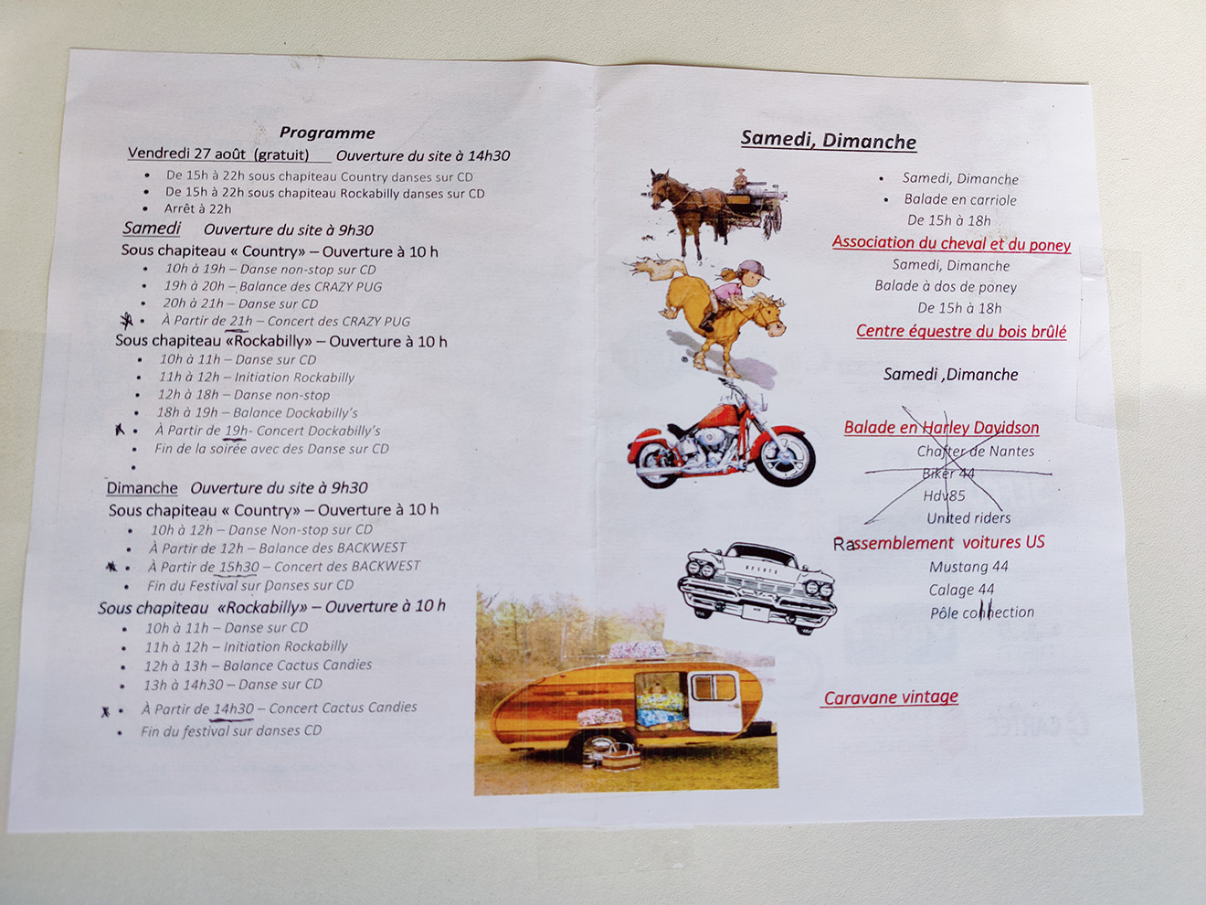- des concerts sous les chapiteaux: DOCKABILLY’S , et CRAZY PUG le samedi 28 Aout; CACTUS CANDIES et BACKWEST le dimanche 29 Août