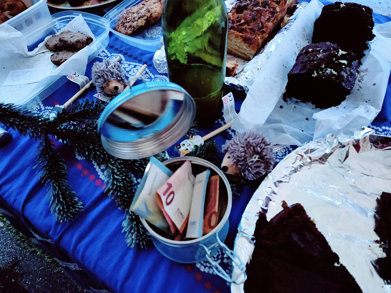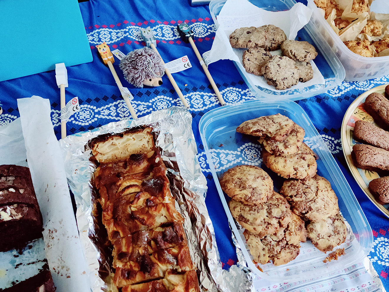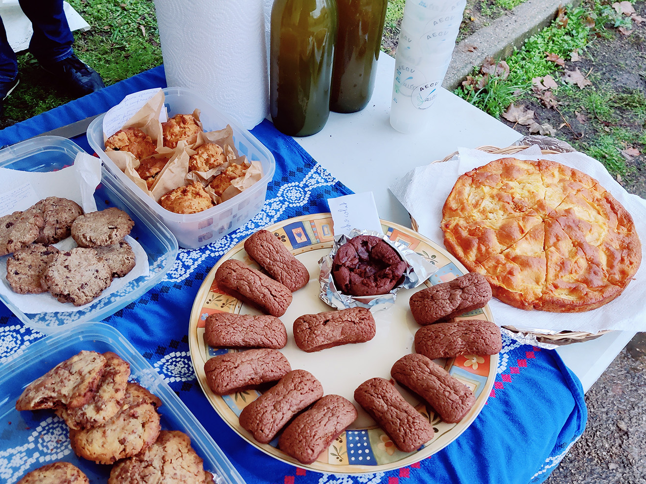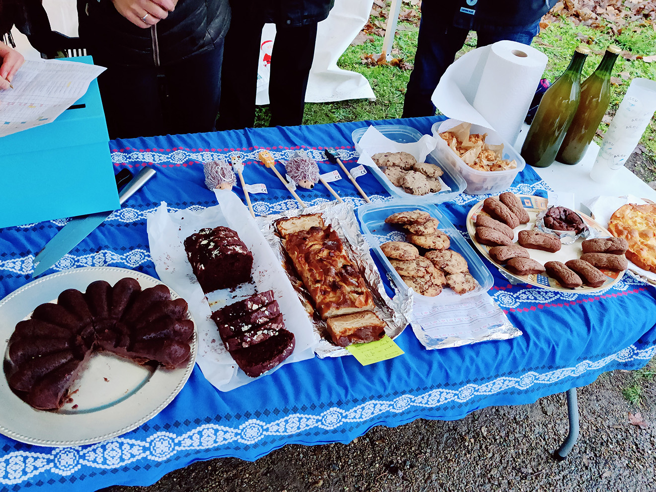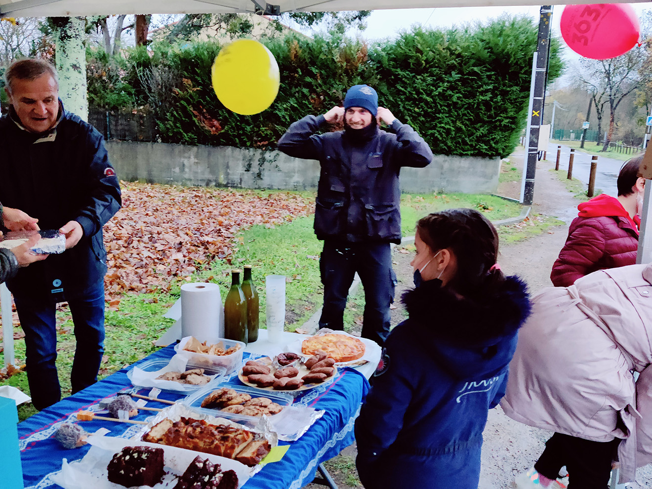 - Confection puis vente de gâteaux place des 3 cheminées le 3 décembre 2021 avec l’aide des enfants. Les gourmands ont pu acheter et déguster tous les délicieux gâteaux préparés par les habitants (ah… le super flan aux pommes d’Annie, les fondants extra au chocolat de Magali, les cookies régalants aux ferrero rochers de Françoise, le célèbre gâteau aux pommes de Claudie, le fabuleux gâteau cake au carambar de Sarah, et tant d’autres gourmandises …)