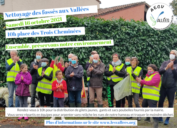 Comme chaque année, les Vallées se refont une beauté avec un nettoyage des fossés. Rendez-vous le samedi 16 octobre à 10h place des Trois Cheminées pour la distribution des gilets jaunes, des gants et des sacs poubelles. Vous serez répartis en équipes pour arpenter sans relâche les rues de notre hameau et traquer le moindre déchet. Un moment... Lire la Suite →